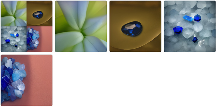 Some txt2img results on the simple prompt gem, sapphire, photo