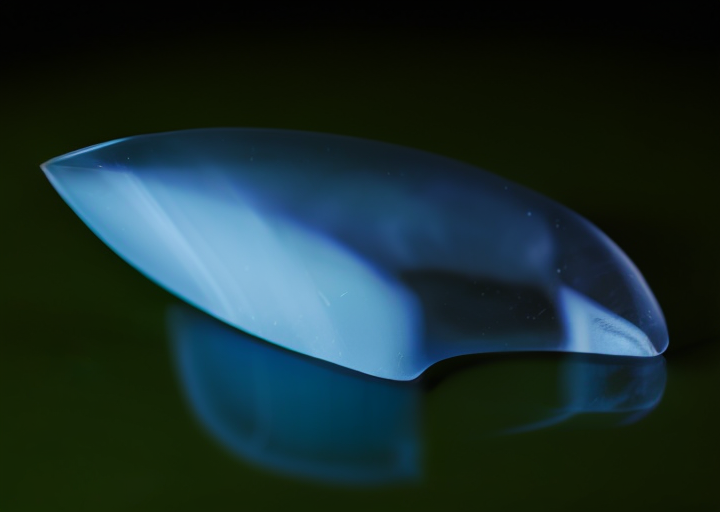 photo, photograph, 85mm, a transparent stone is laying on a black surface with a green background and a black background with a black background