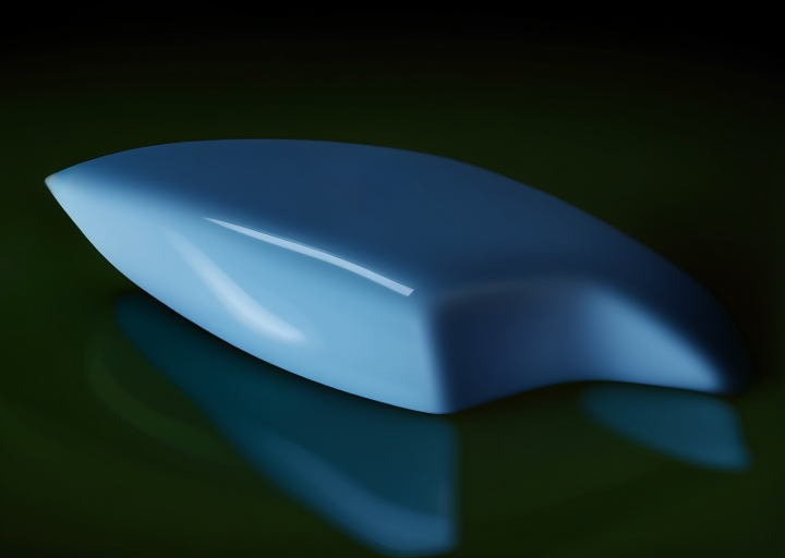 a blue object is laying on a black surface with a green background and a black background with a black background, by [artist]